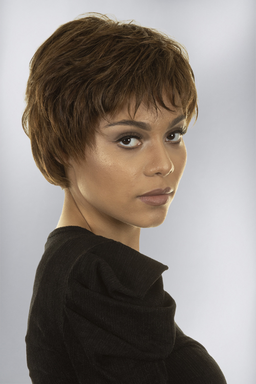 Toni is a super wispy and flattering cropped style that has been masterfully crafted and 100% hand-tied for the most natural appearance yet. The medium-density 100% Remy human hair creates a super lightweight wig that sits softly against the head for ultimate comfort.